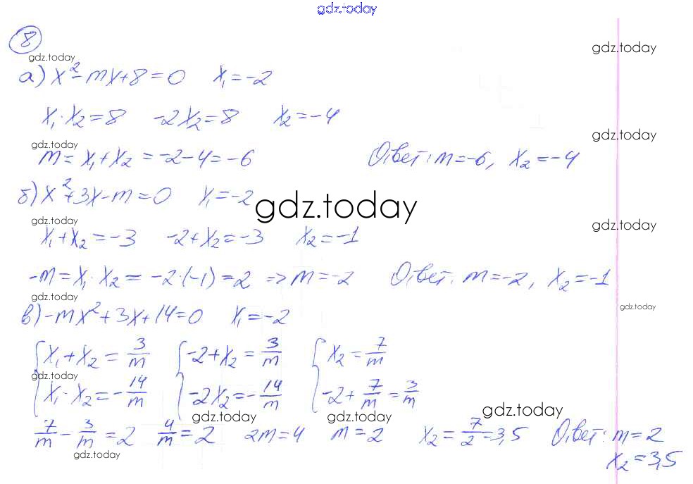 Ответы к О-21. Теорема Виета Решение к обучающим работам 8 Дидактическим материалам по Алгебре для 8 класса Евстафьева, Карп Просвещение 2017