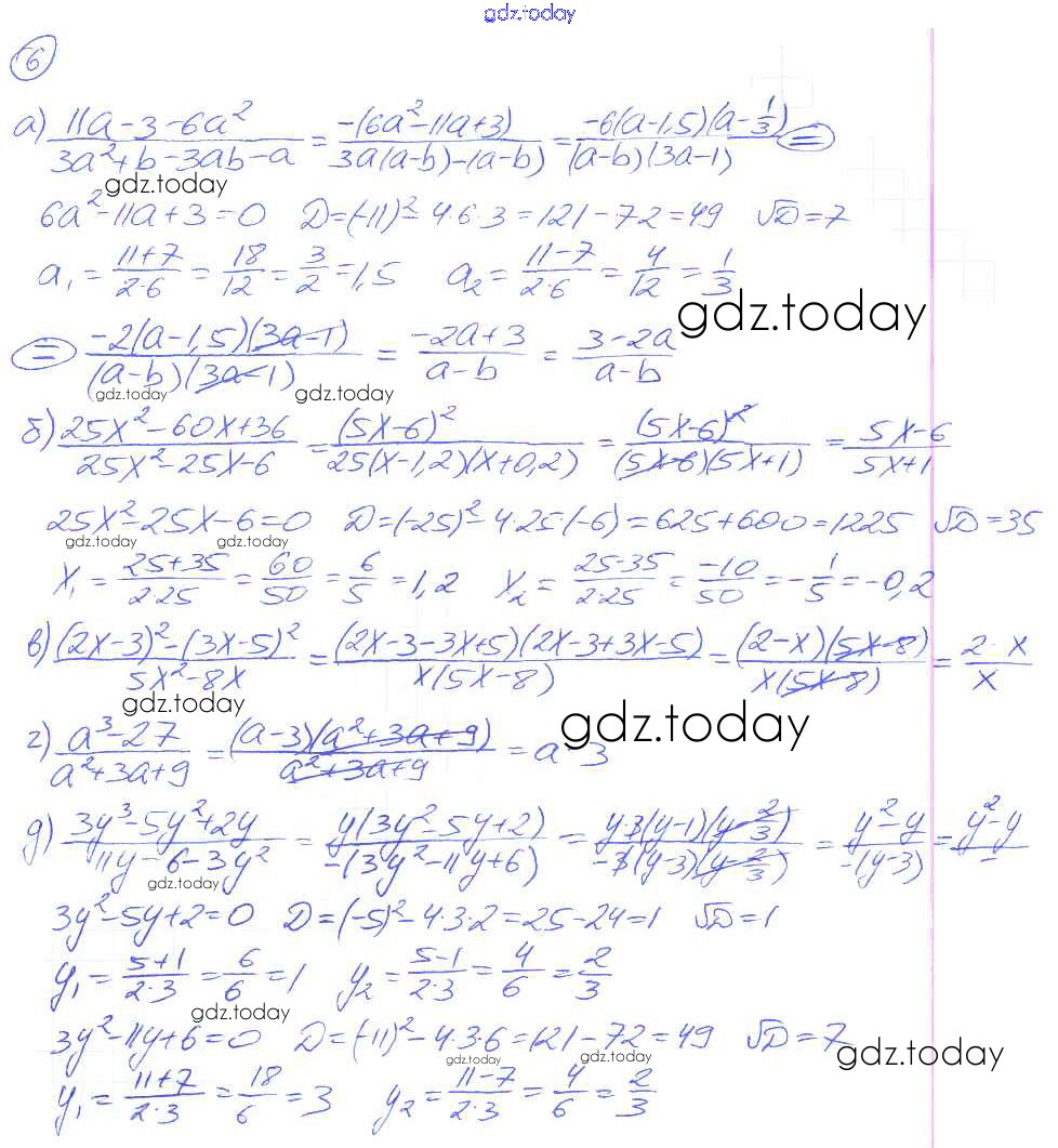 Ответы к О-22. Разложение квадратного трехчлена на множители Решение к обучающим работам 6 Дидактическим материалам по Алгебре для 8 класса Евстафьева, Карп Просвещение 2017