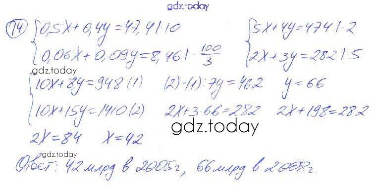 Ответы к О-28. Решение задач с помощью систем уравнений Решение к обучающим работам 14 Дидактическим материалам по Алгебре для 8 класса Евстафьева, Карп Просвещение 2017