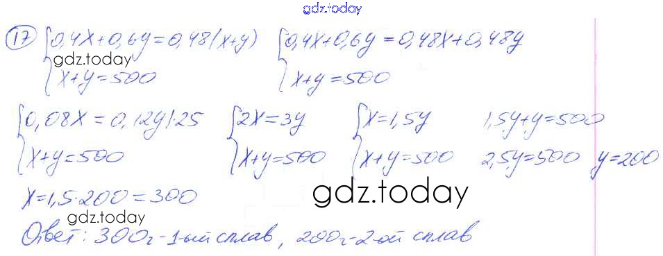 Ответы к О-28. Решение задач с помощью систем уравнений Решение к обучающим работам 17 Дидактическим материалам по Алгебре для 8 класса Евстафьева, Карп Просвещение 2017