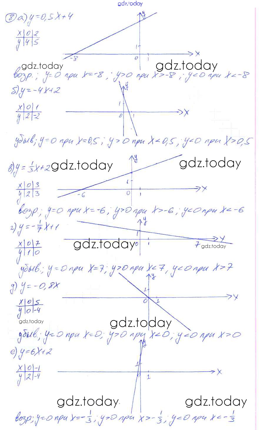 Ответы к О-34. Линейная функция Решение к обучающим работам 8 Дидактическим материалам по Алгебре для 8 класса Евстафьева, Карп Просвещение 2017