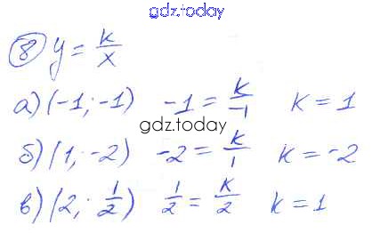 Ответы к О-35. Функция y = k:x и ее график Решение к обучающим работам 8 Дидактическим материалам по Алгебре для 8 класса Евстафьева, Карп Просвещение 2017