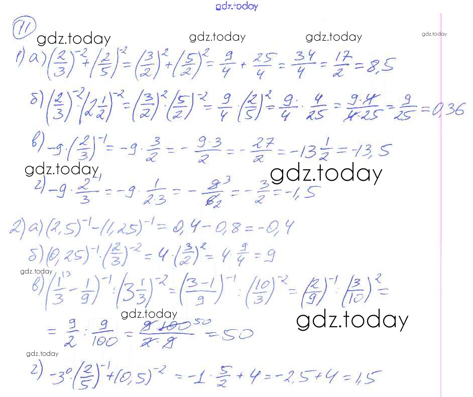 Ответы к О-7. Степень с целым показателем Решение к обучающим работам 11 Дидактическим материалам по Алгебре для 8 класса Евстафьева, Карп Просвещение 2017