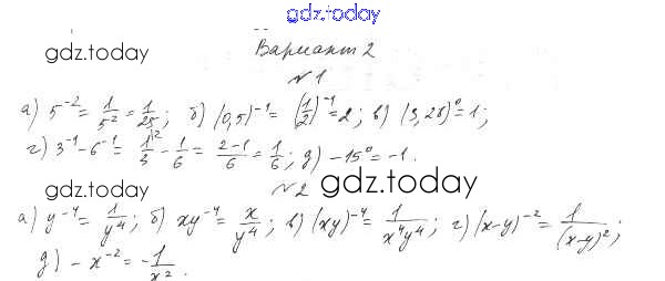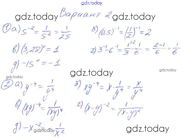 На страницах сайта gdz.today вы найдете учебный и вспомогательный материал, направленный на улучшения знаний школьной программы. ГДЗ - онлайн мир знаний П-12. Определение степени с целым показателем Решение к проверочным заданиям Вариант 2 Дидактическим материалам по Алгебре для 8 класса Евстафьева, Карп Просвещение 2017