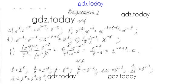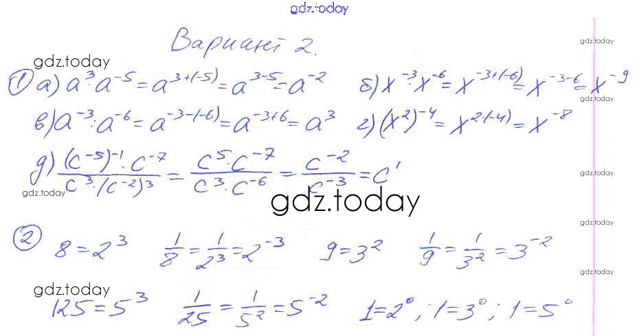 На страницах сайта gdz.today вы найдете учебный и вспомогательный материал, направленный на улучшения знаний школьной программы. ГДЗ - онлайн мир знаний П-14. Свойства степени с целым показателем Решение к проверочным заданиям Вариант 2 Дидактическим материалам по Алгебре для 8 класса Евстафьева, Карп Просвещение 2017