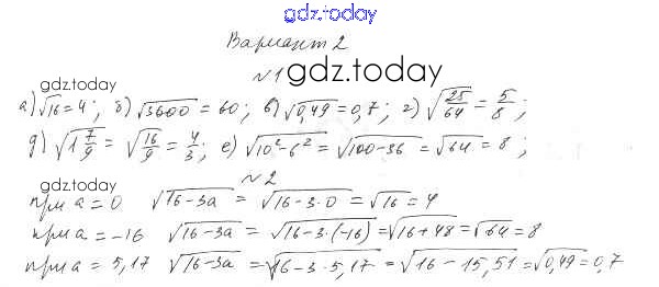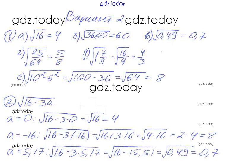 На страницах сайта gdz.today вы найдете учебный и вспомогательный материал, направленный на улучшения знаний школьной программы. ГДЗ - онлайн мир знаний П-16. Квадратные корни Решение к проверочным заданиям Вариант 2 Дидактическим материалам по Алгебре для 8 класса Евстафьева, Карп Просвещение 2017