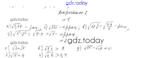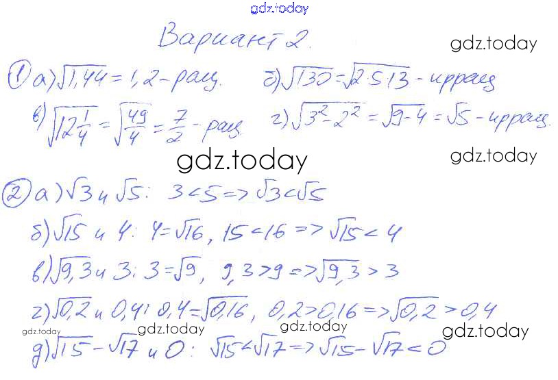 На страницах сайта gdz.today вы найдете учебный и вспомогательный материал, направленный на улучшения знаний школьной программы. ГДЗ - онлайн мир знаний П-18. Квадратные корни Решение к проверочным заданиям Вариант 2 Дидактическим материалам по Алгебре для 8 класса Евстафьева, Карп Просвещение 2017