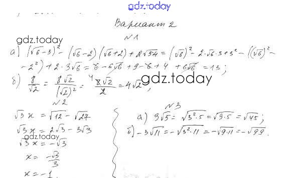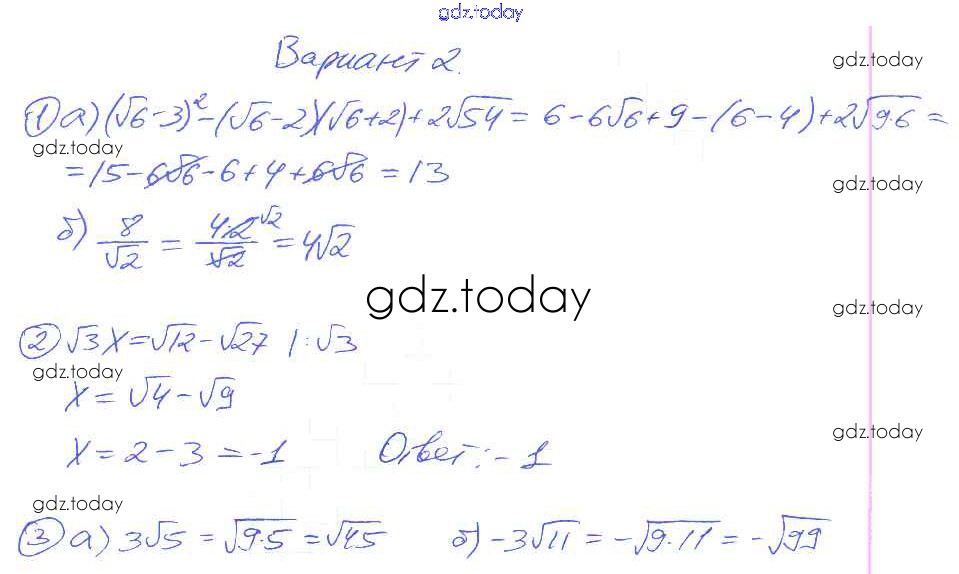 На страницах сайта gdz.today вы найдете учебный и вспомогательный материал, направленный на улучшения знаний школьной программы. ГДЗ - онлайн мир знаний П-21. Теорема Виета Решение к проверочным заданиям Вариант 2 Дидактическим материалам по Алгебре для 8 класса Евстафьева, Карп Просвещение 2017