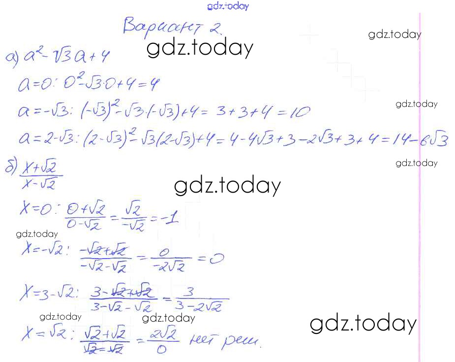 На страницах сайта gdz.today вы найдете учебный и вспомогательный материал, направленный на улучшения знаний школьной программы. ГДЗ - онлайн мир знаний П-22. Разложение квадратного трехчлена на множители Решение к проверочным заданиям Вариант 2 Дидактическим материалам по Алгебре для 8 класса Евстафьева, Карп Просвещение 2017