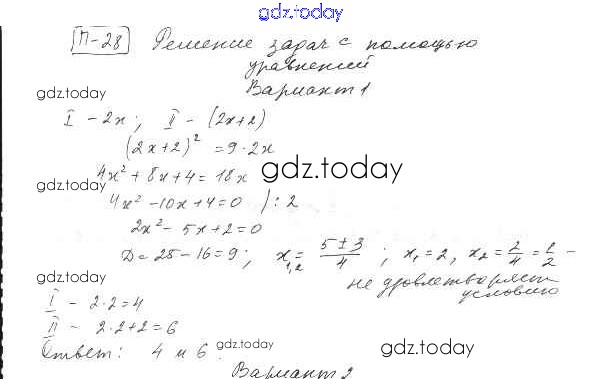 На страницах сайта gdz.today вы найдете учебный и вспомогательный материал, направленный на улучшения знаний школьной программы. ГДЗ - онлайн мир знаний П-28. Решение задач с помощью систем уравнений Решение к проверочным заданиям Вариант 1 Дидактическим материалам по Алгебре для 8 класса Евстафьева, Карп Просвещение 2017