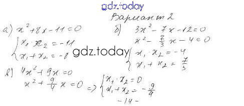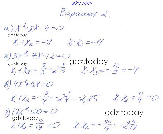 На страницах сайта gdz.today вы найдете учебный и вспомогательный материал, направленный на улучшения знаний школьной программы. ГДЗ - онлайн мир знаний П-32. Теорема Виета Решение к проверочным заданиям Вариант 2 Дидактическим материалам по Алгебре для 8 класса Евстафьева, Карп Просвещение 2017