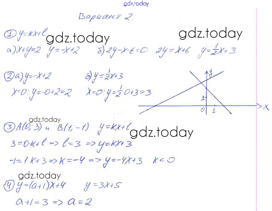 На страницах сайта gdz.today вы найдете учебный и вспомогательный материал, направленный на улучшения знаний школьной программы. ГДЗ - онлайн мир знаний П-38. Уравнение прямой вида у = kx + I Решение к проверочным заданиям Вариант 2 Дидактическим материалам по Алгебре для 8 класса Евстафьева, Карп Просвещение 2017