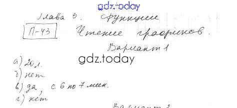 На страницах сайта gdz.today вы найдете учебный и вспомогательный материал, направленный на улучшения знаний школьной программы. ГДЗ - онлайн мир знаний П-43. Чтение графиков Решение к проверочным заданиям Вариант 1 Дидактическим материалам по Алгебре для 8 класса Евстафьева, Карп Просвещение 2017