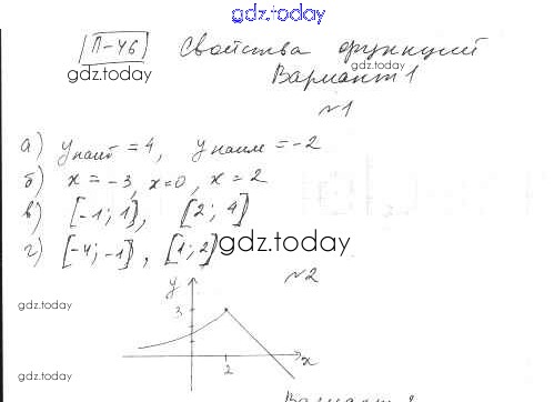 На страницах сайта gdz.today вы найдете учебный и вспомогательный материал, направленный на улучшения знаний школьной программы. ГДЗ - онлайн мир знаний П-46. Свойства функций Решение к проверочным заданиям Вариант 1 Дидактическим материалам по Алгебре для 8 класса Евстафьева, Карп Просвещение 2017