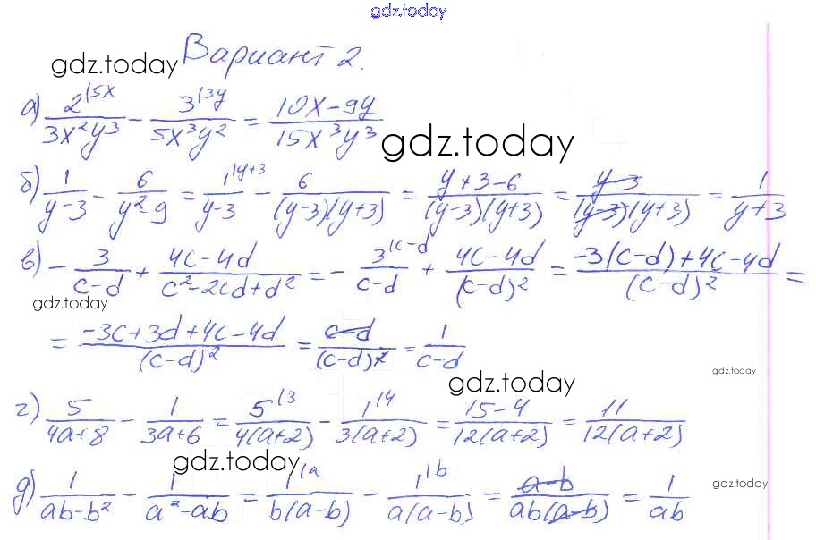 На страницах сайта gdz.today вы найдете учебный и вспомогательный материал, направленный на улучшения знаний школьной программы. ГДЗ - онлайн мир знаний П-6. Сложение и вычитание дробей Решение к проверочным заданиям Вариант 2 Дидактическим материалам по Алгебре для 8 класса Евстафьева, Карп Просвещение 2017