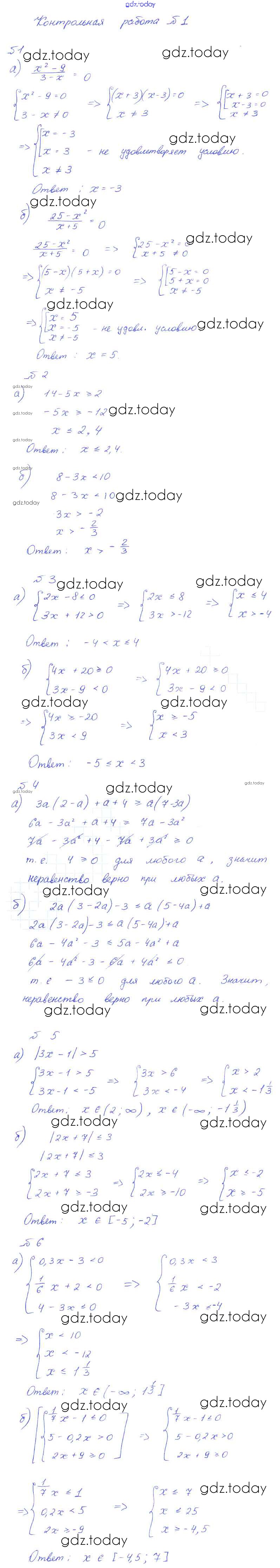 Ответы к Решение к контрольным работам 1 Дидактическим материалам по Алгебре для 8 класса Ткачева, Федорова Просвещение 2013