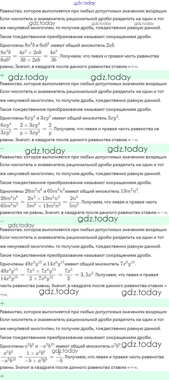Ответы к Решение. §2. Основное свойство рациональной дроби 2 Рабочей тетради по Алгебре для 8 класса Мерзляк, Полонский Вентана-граф Алгоритм успеха 2019