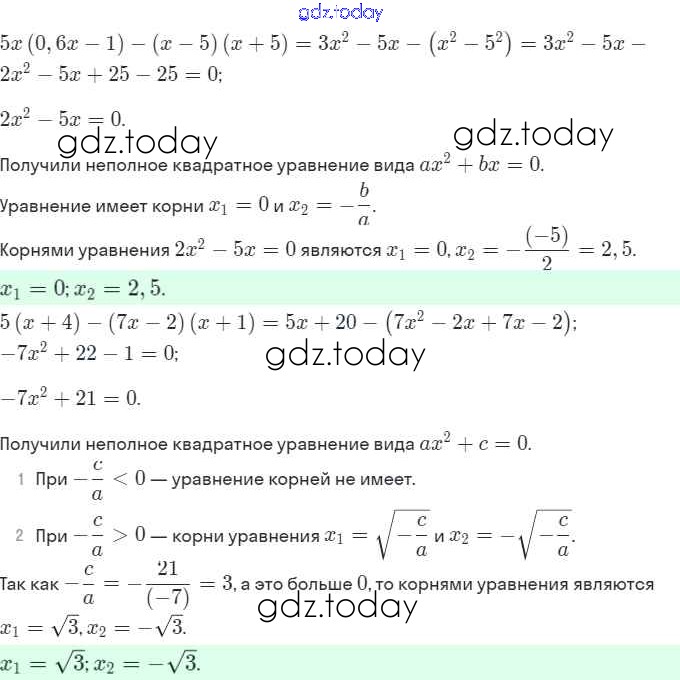 Ответы к Решение. §19. Квадратные уравнения. Решение неполных квадратных уравнений 12 Рабочей тетради по Алгебре для 8 класса Мерзляк, Полонский Вентана-граф Алгоритм успеха 2019