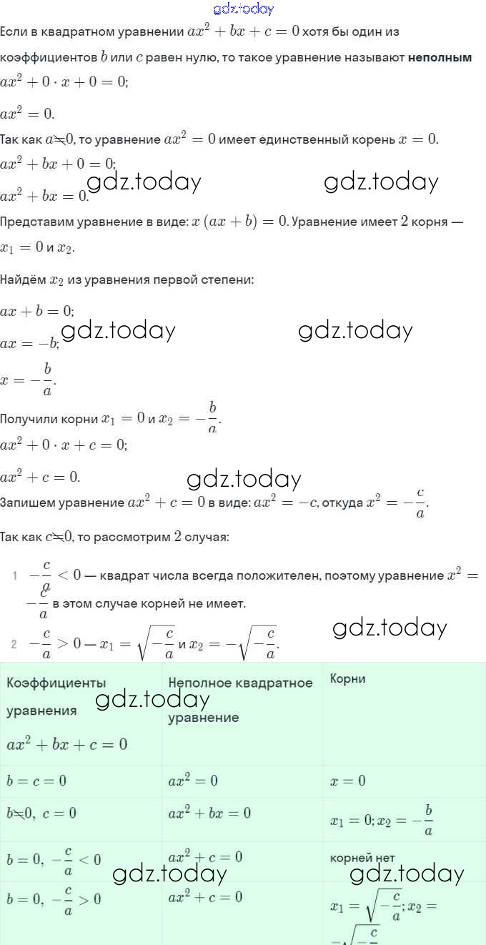 Решение. §19. Квадратные уравнения. Решение неполных квадратных уравнений