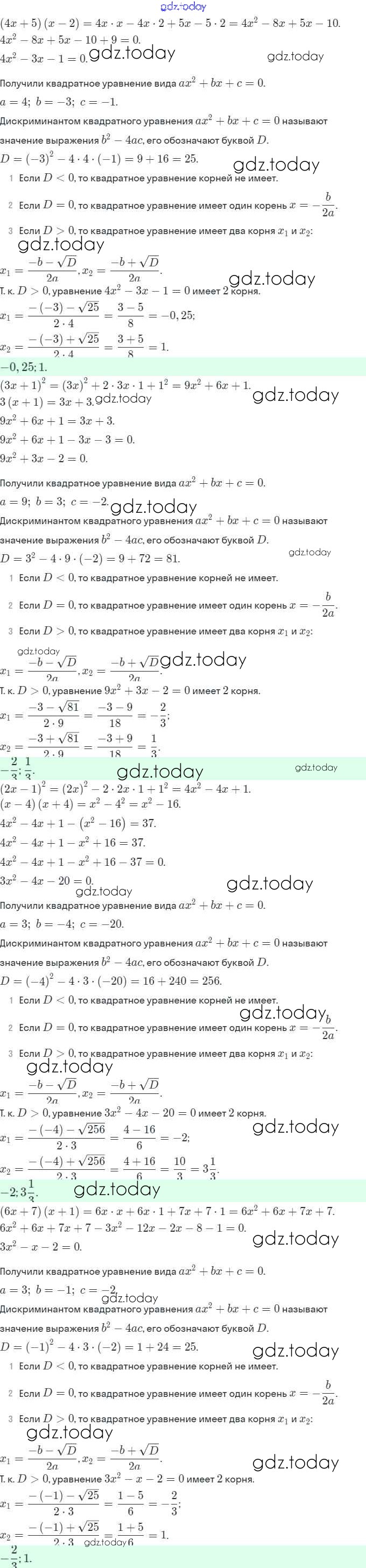 Ответы к Решение. §20. Формула корней квадратного уравнения 4 Рабочей тетради по Алгебре для 8 класса Мерзляк, Полонский Вентана-граф Алгоритм успеха 2019