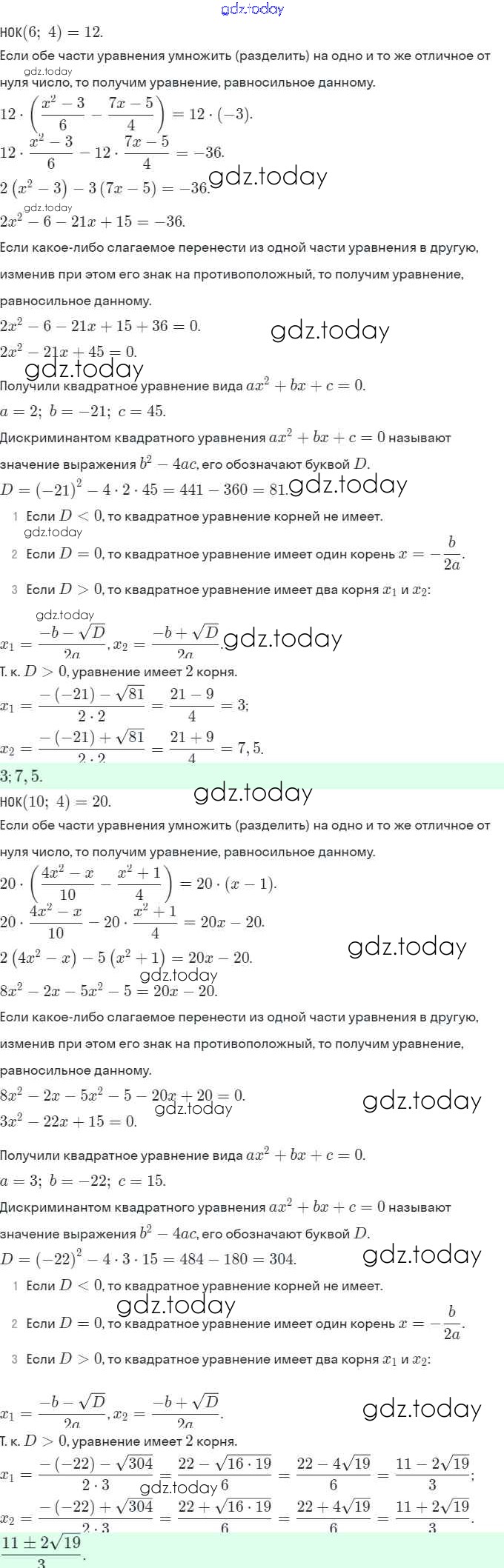 Ответы к Решение. §20. Формула корней квадратного уравнения 7 Рабочей тетради по Алгебре для 8 класса Мерзляк, Полонский Вентана-граф Алгоритм успеха 2019