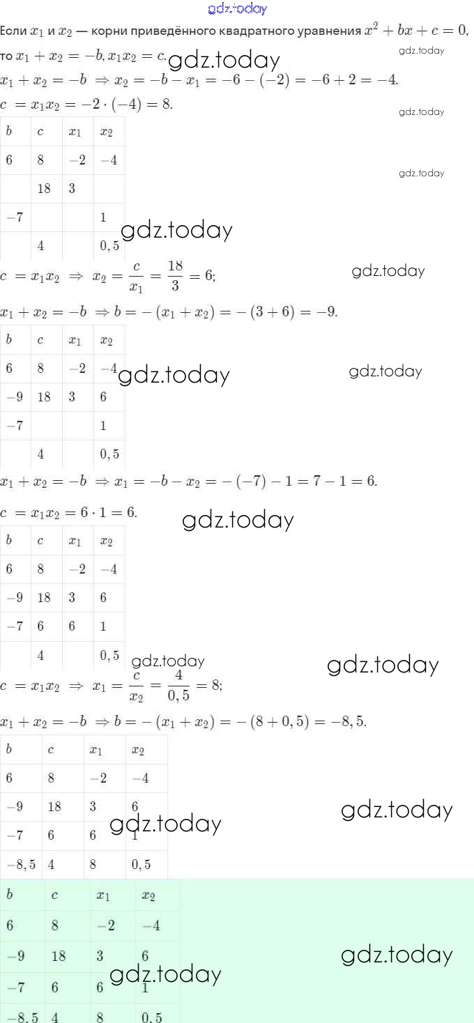 Ответы к Решение. §21. Теорема Виета 5 Рабочей тетради по Алгебре для 8 класса Мерзляк, Полонский Вентана-граф Алгоритм успеха 2019