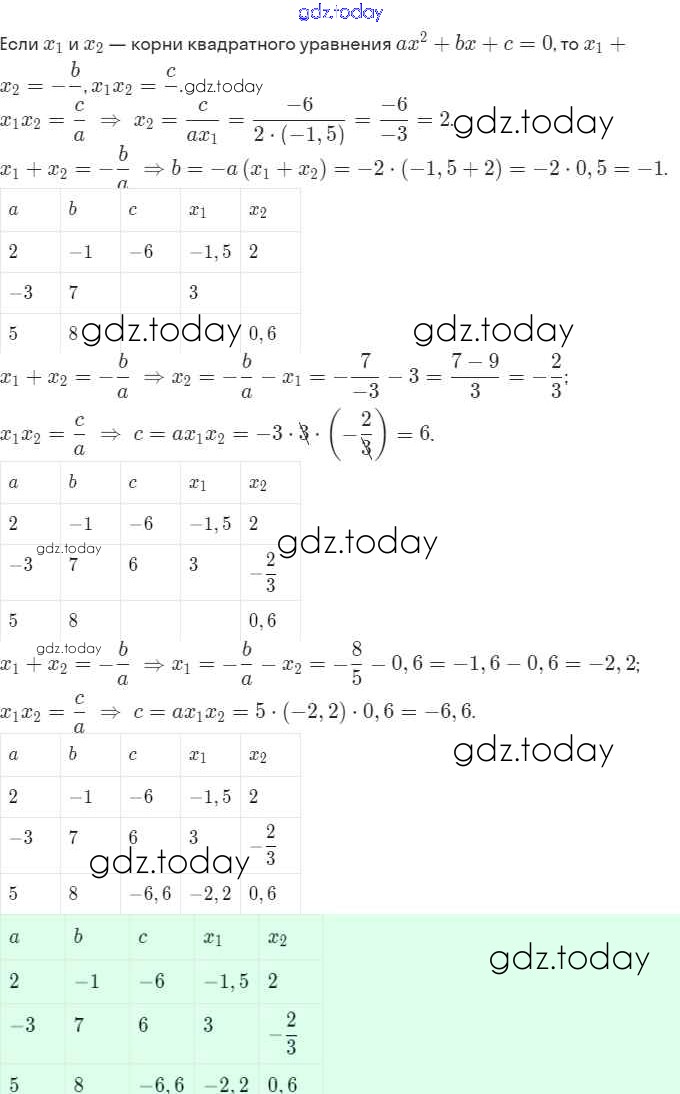Ответы к Решение. §21. Теорема Виета 6 Рабочей тетради по Алгебре для 8 класса Мерзляк, Полонский Вентана-граф Алгоритм успеха 2019