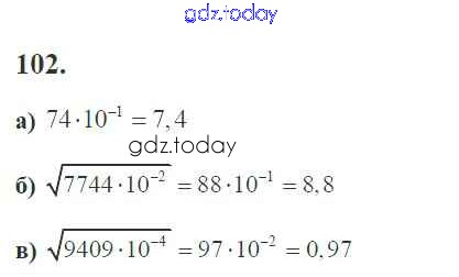 Ответы к Решение. Упражнения 102 Рабочей тетради по Алгебре для 8 класса Минаева, Рослова Просвещение 2017