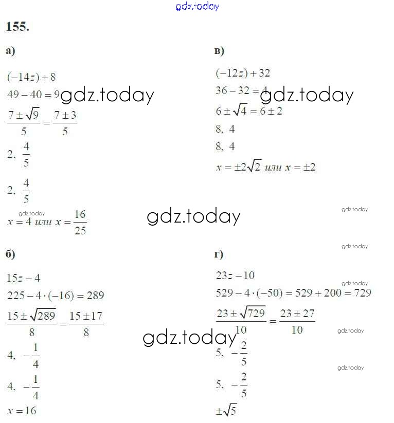 Ответы к Решение. Упражнения 155 Рабочей тетради по Алгебре для 8 класса Минаева, Рослова Просвещение 2017