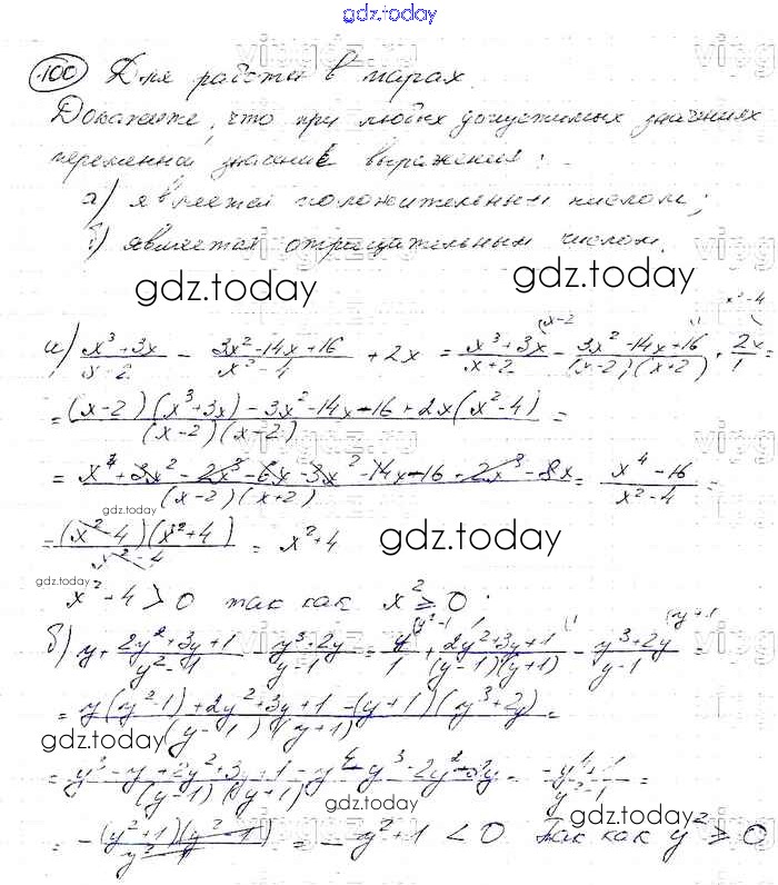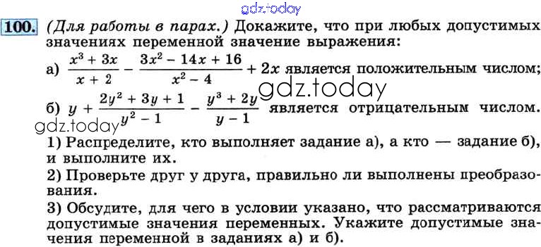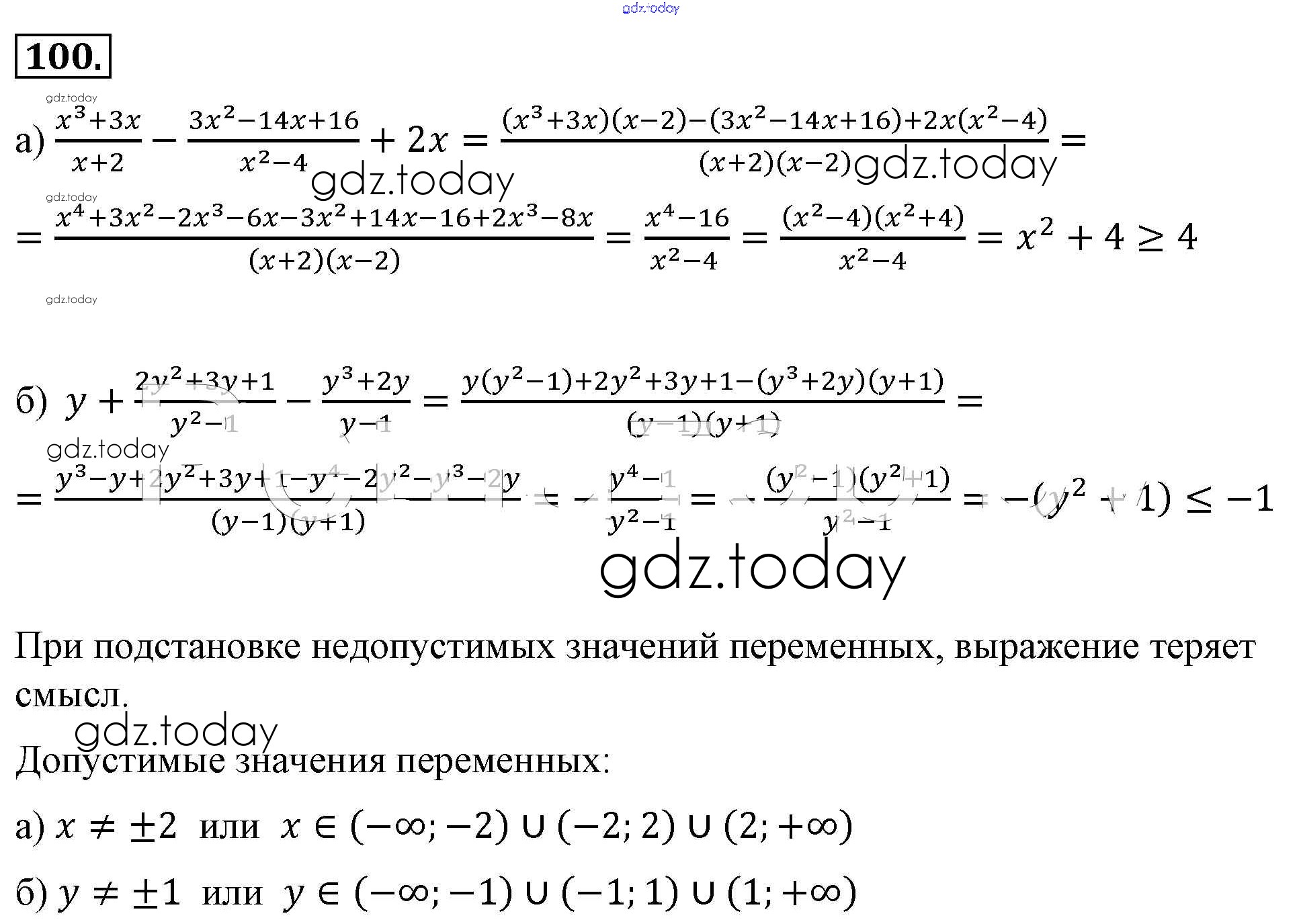 На страницах сайта gdz.today вы найдете учебный и вспомогательный материал, направленный на улучшения знаний школьной программы. ГДЗ - онлайн мир знаний Решение к упражнениям 100 Учебнику по Алгебре для 8 класса Макарычев, Миндюк Просвещение 2016