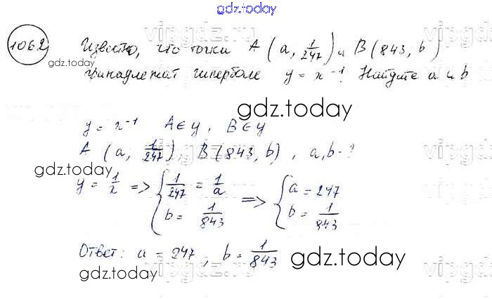На страницах сайта gdz.today вы найдете учебный и вспомогательный материал, направленный на улучшения знаний школьной программы. ГДЗ - онлайн мир знаний Решение к упражнениям 1062 Учебнику по Алгебре для 8 класса Макарычев, Миндюк Просвещение 2016