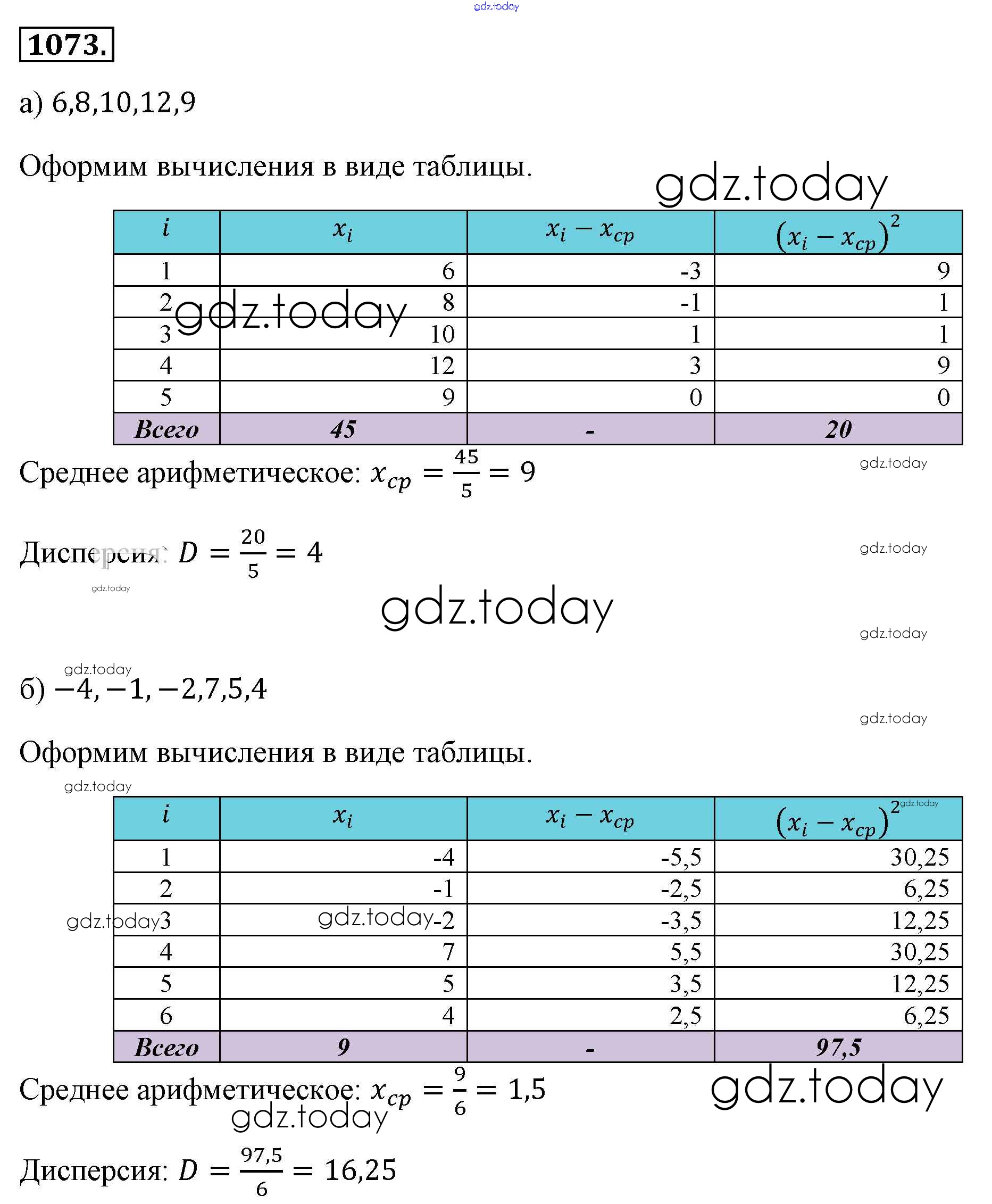 Ответы к Решение к упражнениям 1073 Учебнику по Алгебре для 8 класса Макарычев, Миндюк Просвещение 2016
