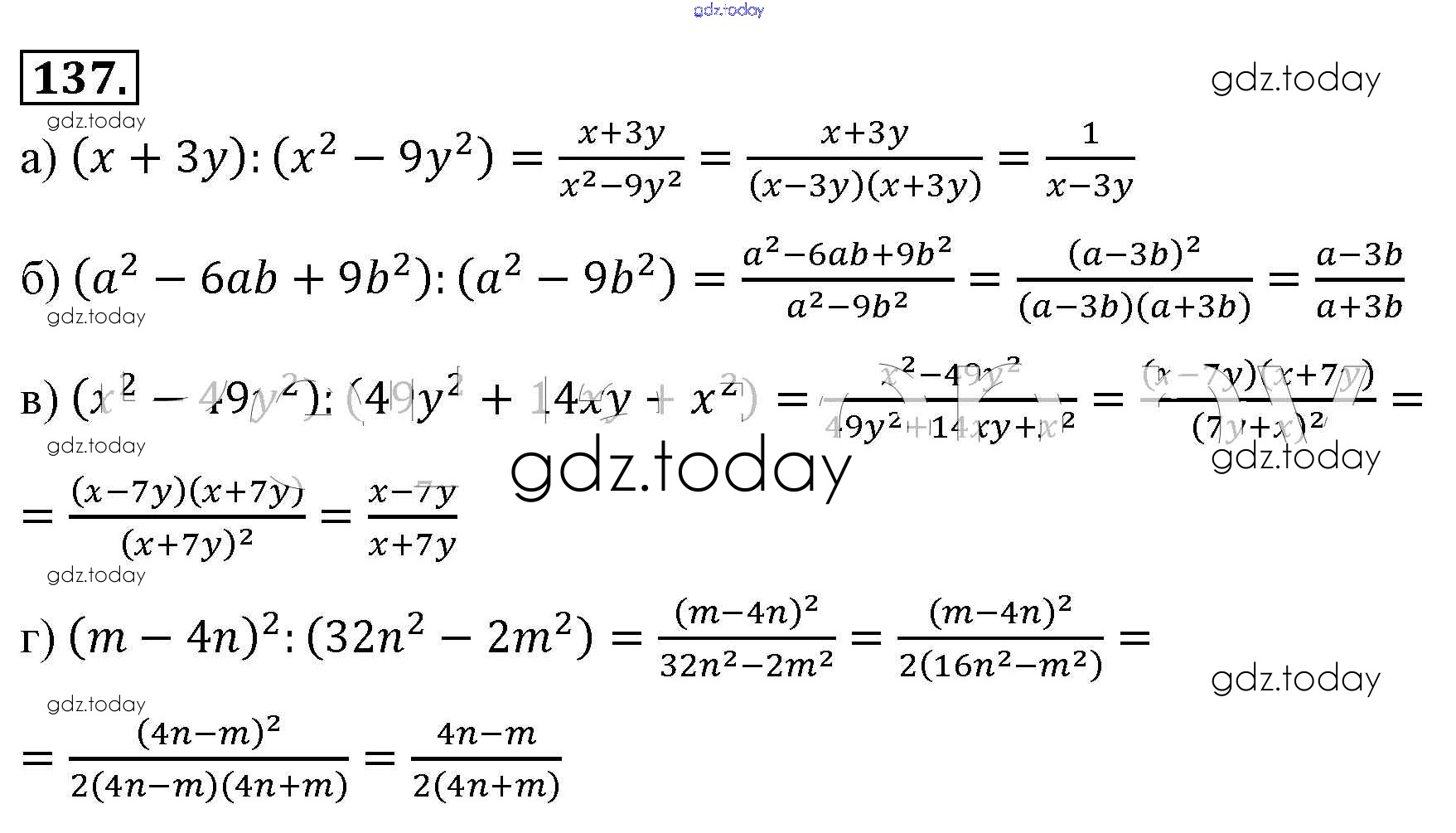 На страницах сайта gdz.today вы найдете учебный и вспомогательный материал, направленный на улучшения знаний школьной программы. ГДЗ - онлайн мир знаний Решение к упражнениям 137 Учебнику по Алгебре для 8 класса Макарычев, Миндюк Просвещение 2016