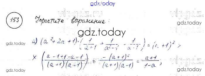 На страницах сайта gdz.today вы найдете учебный и вспомогательный материал, направленный на улучшения знаний школьной программы. ГДЗ - онлайн мир знаний Решение к упражнениям 153 Учебнику по Алгебре для 8 класса Макарычев, Миндюк Просвещение 2016