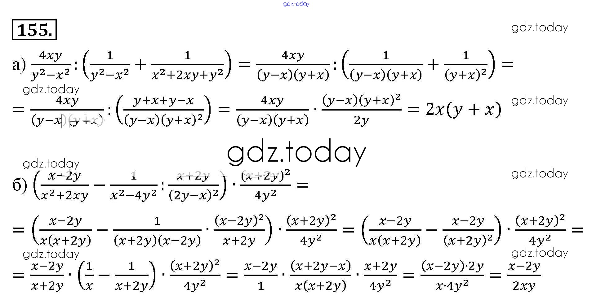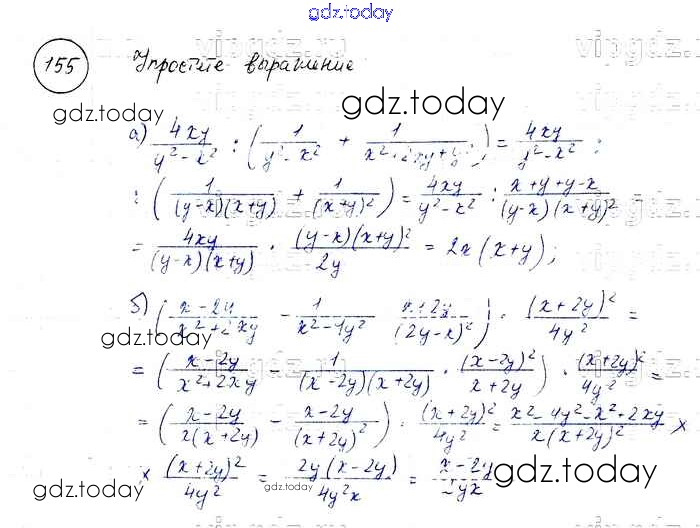 На страницах сайта gdz.today вы найдете учебный и вспомогательный материал, направленный на улучшения знаний школьной программы. ГДЗ - онлайн мир знаний Решение к упражнениям 155 Учебнику по Алгебре для 8 класса Макарычев, Миндюк Просвещение 2016