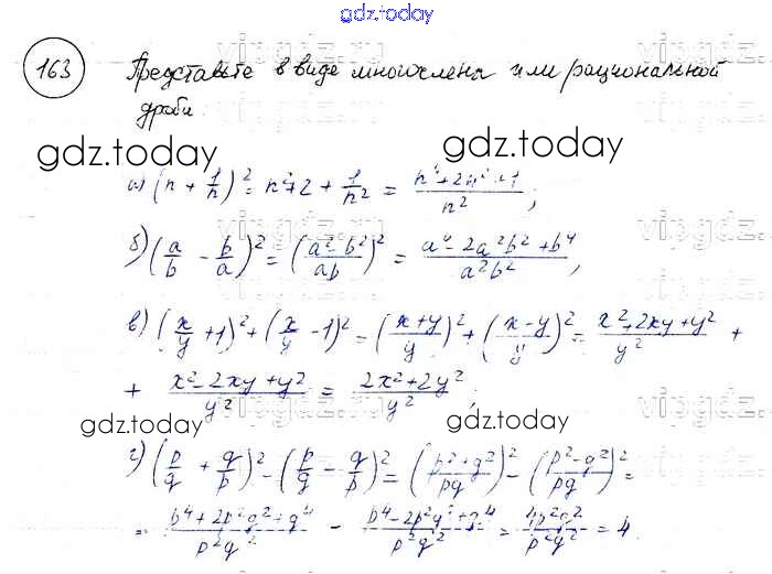 На страницах сайта gdz.today вы найдете учебный и вспомогательный материал, направленный на улучшения знаний школьной программы. ГДЗ - онлайн мир знаний Решение к упражнениям 163 Учебнику по Алгебре для 8 класса Макарычев, Миндюк Просвещение 2016