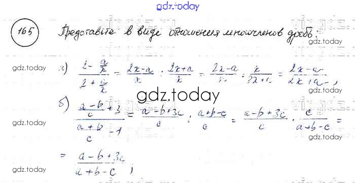 На страницах сайта gdz.today вы найдете учебный и вспомогательный материал, направленный на улучшения знаний школьной программы. ГДЗ - онлайн мир знаний Решение к упражнениям 165 Учебнику по Алгебре для 8 класса Макарычев, Миндюк Просвещение 2016