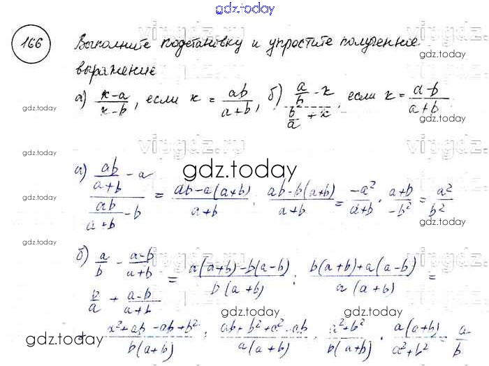 На страницах сайта gdz.today вы найдете учебный и вспомогательный материал, направленный на улучшения знаний школьной программы. ГДЗ - онлайн мир знаний Решение к упражнениям 166 Учебнику по Алгебре для 8 класса Макарычев, Миндюк Просвещение 2016