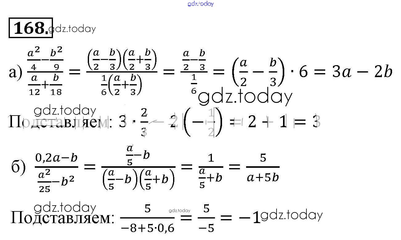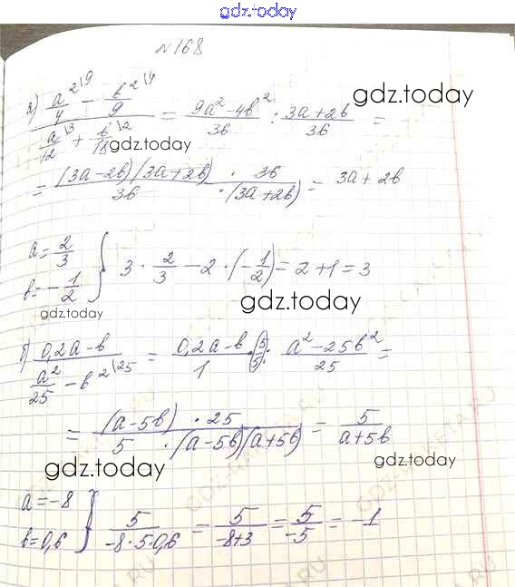 На страницах сайта gdz.today вы найдете учебный и вспомогательный материал, направленный на улучшения знаний школьной программы. ГДЗ - онлайн мир знаний Решение к упражнениям 168 Учебнику по Алгебре для 8 класса Макарычев, Миндюк Просвещение 2016