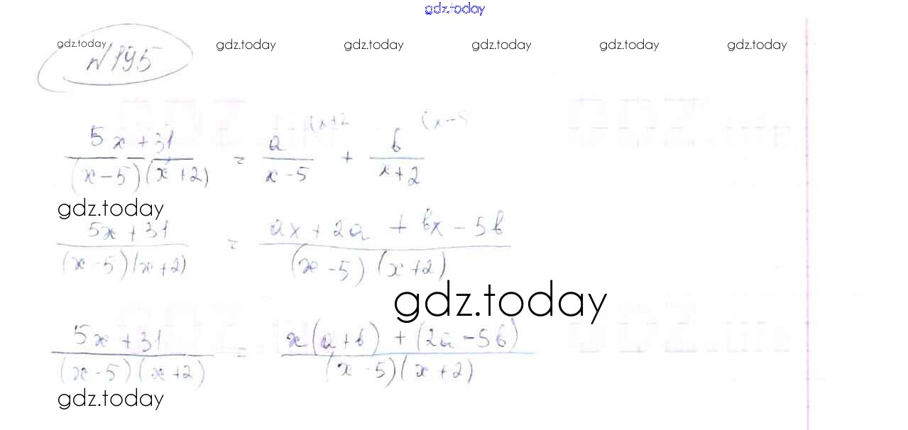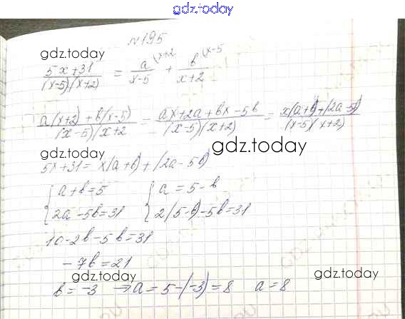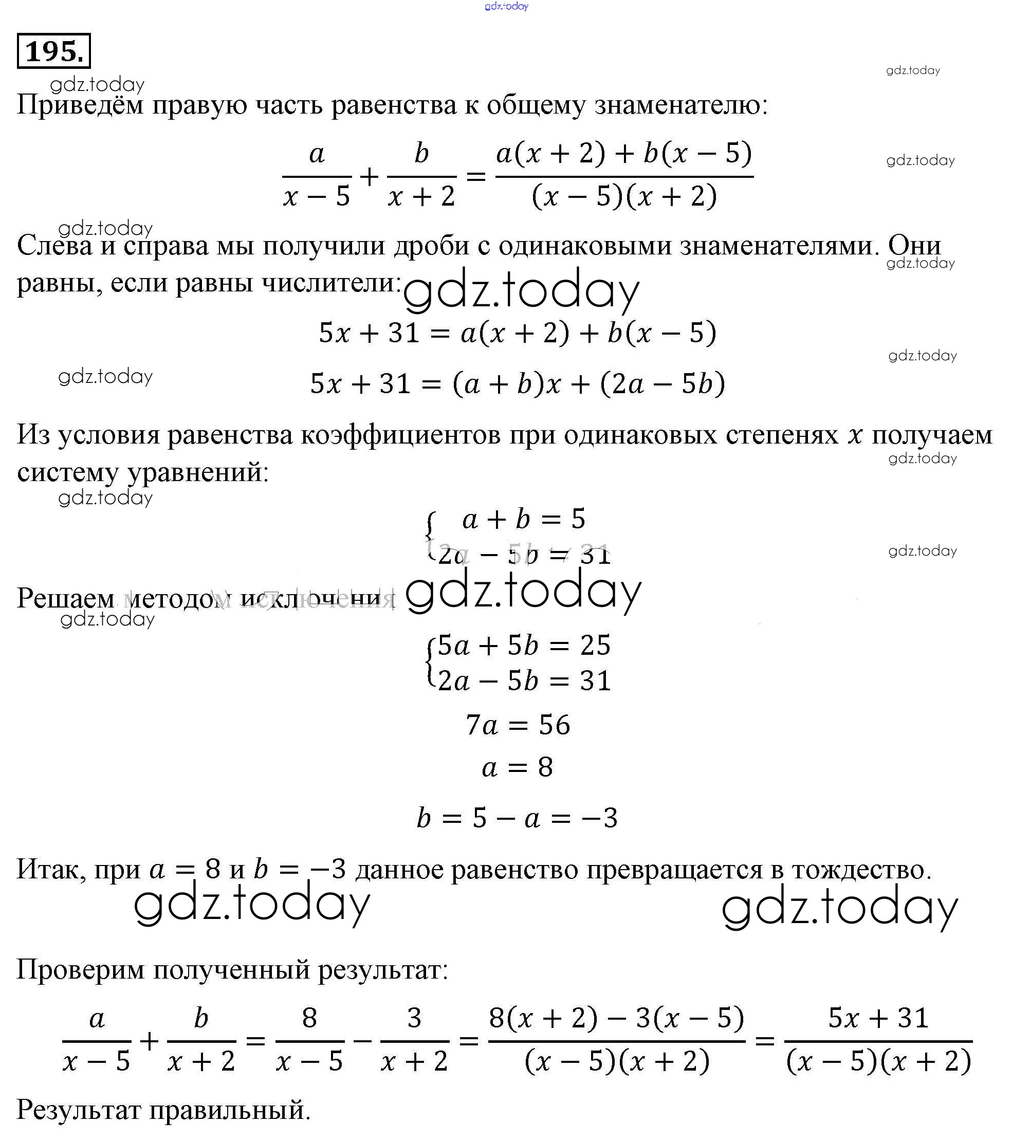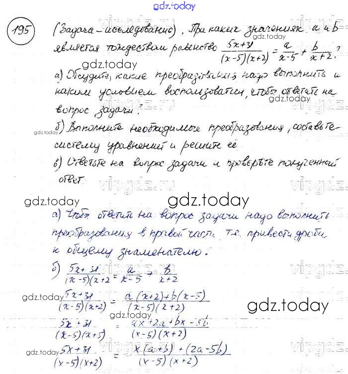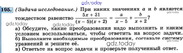 На страницах сайта gdz.today вы найдете учебный и вспомогательный материал, направленный на улучшения знаний школьной программы. ГДЗ - онлайн мир знаний Решение к упражнениям 195 Учебнику по Алгебре для 8 класса Макарычев, Миндюк Просвещение 2016