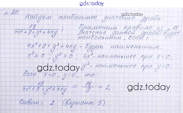 На страницах сайта gdz.today вы найдете учебный и вспомогательный материал, направленный на улучшения знаний школьной программы. ГДЗ - онлайн мир знаний Решение к упражнениям 20 Учебнику по Алгебре для 8 класса Макарычев, Миндюк Просвещение 2016
