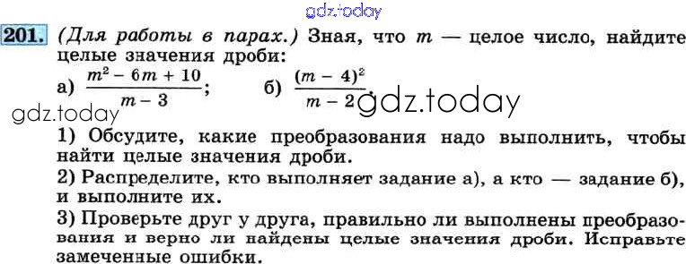 На страницах сайта gdz.today вы найдете учебный и вспомогательный материал, направленный на улучшения знаний школьной программы. ГДЗ - онлайн мир знаний Решение к упражнениям 201 Учебнику по Алгебре для 8 класса Макарычев, Миндюк Просвещение 2016