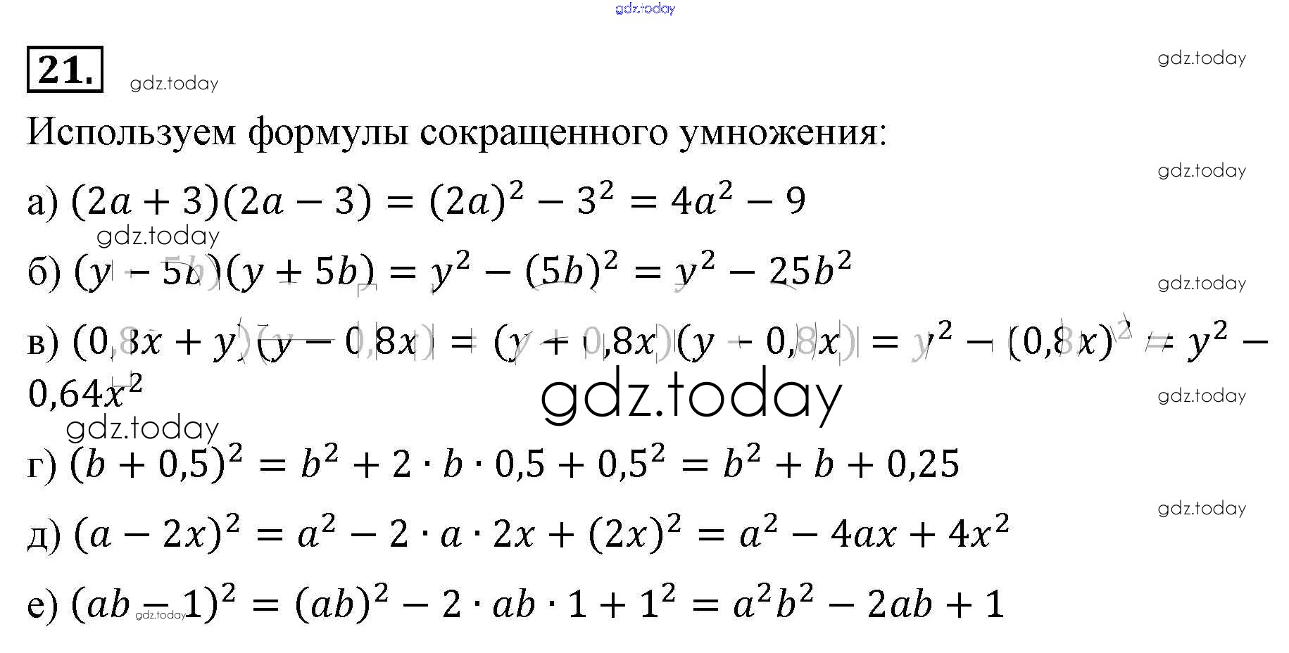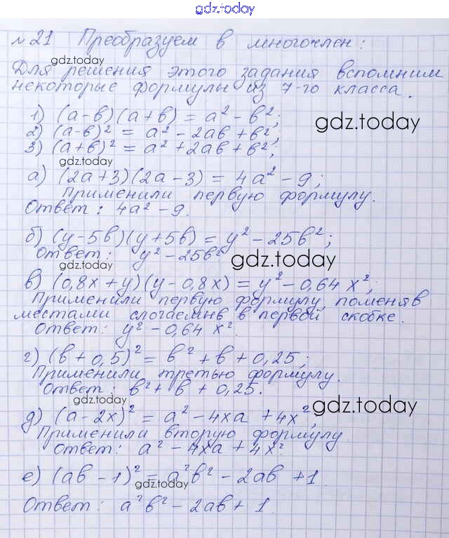 На страницах сайта gdz.today вы найдете учебный и вспомогательный материал, направленный на улучшения знаний школьной программы. ГДЗ - онлайн мир знаний Решение к упражнениям 21 Учебнику по Алгебре для 8 класса Макарычев, Миндюк Просвещение 2016