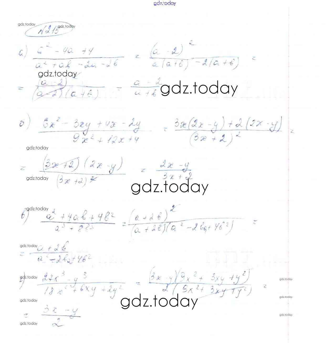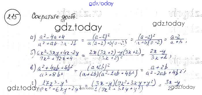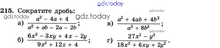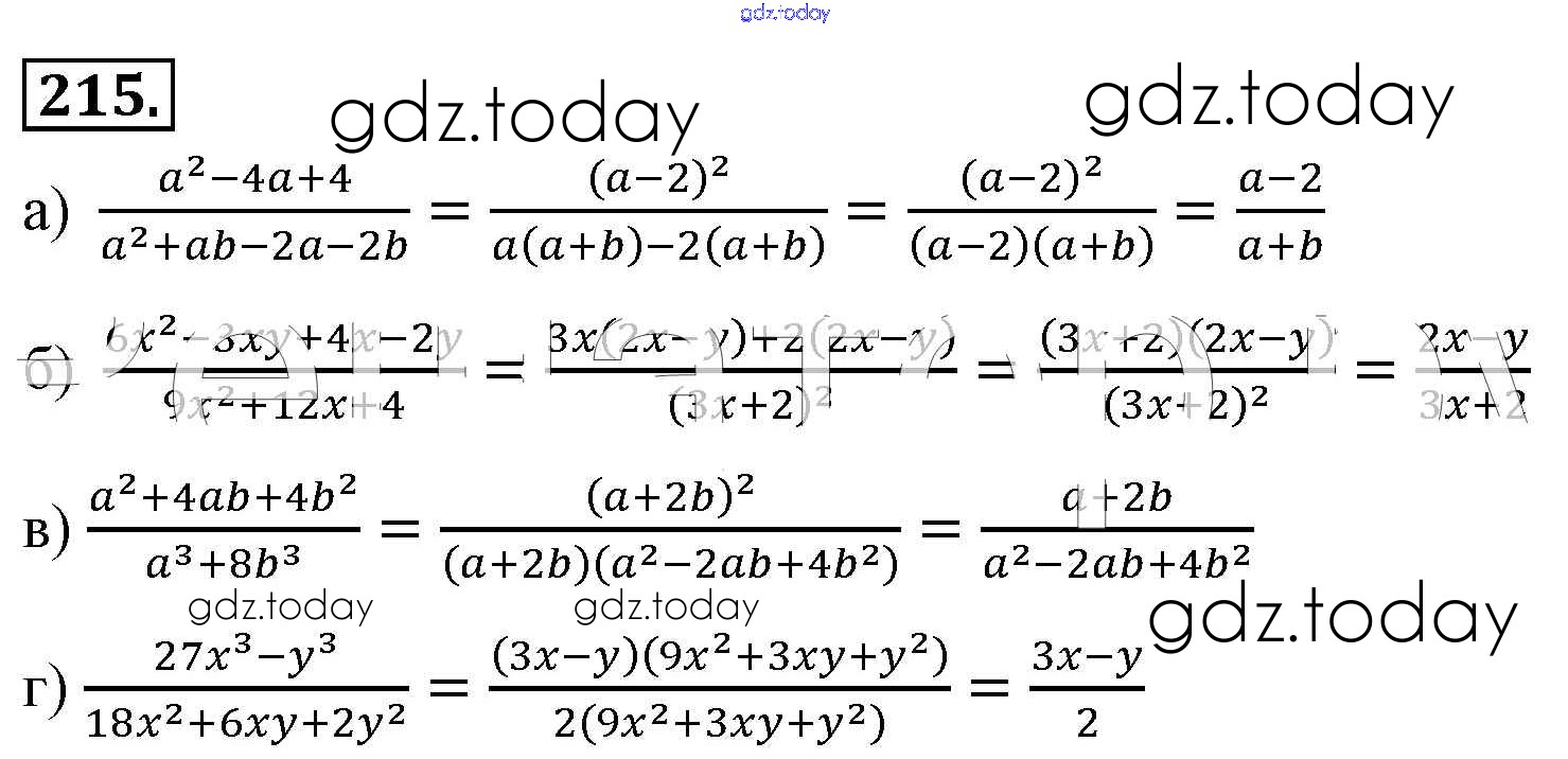 На страницах сайта gdz.today вы найдете учебный и вспомогательный материал, направленный на улучшения знаний школьной программы. ГДЗ - онлайн мир знаний Решение к упражнениям 215 Учебнику по Алгебре для 8 класса Макарычев, Миндюк Просвещение 2016