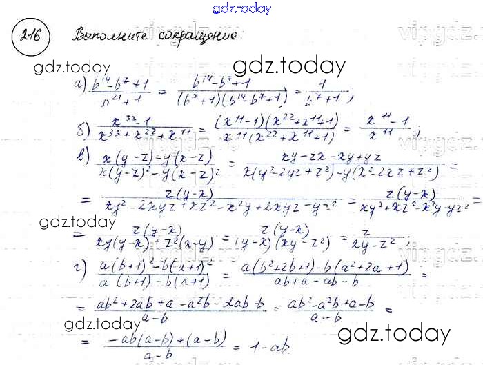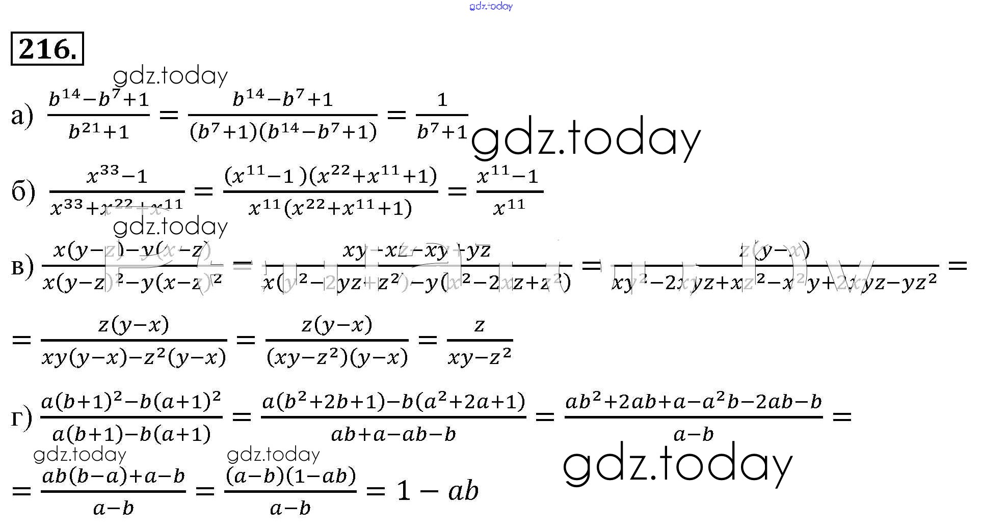 На страницах сайта gdz.today вы найдете учебный и вспомогательный материал, направленный на улучшения знаний школьной программы. ГДЗ - онлайн мир знаний Решение к упражнениям 216 Учебнику по Алгебре для 8 класса Макарычев, Миндюк Просвещение 2016