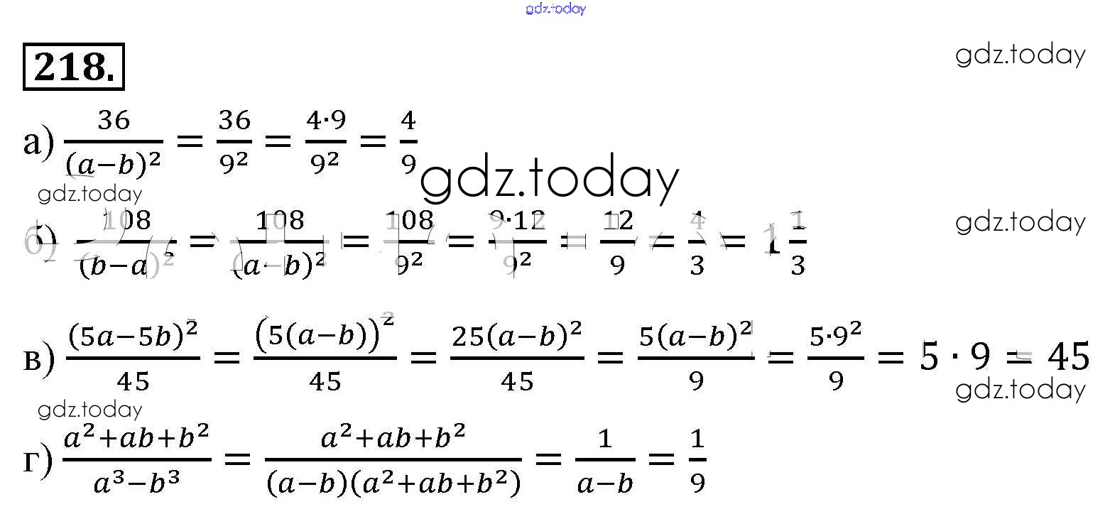 На страницах сайта gdz.today вы найдете учебный и вспомогательный материал, направленный на улучшения знаний школьной программы. ГДЗ - онлайн мир знаний Решение к упражнениям 218 Учебнику по Алгебре для 8 класса Макарычев, Миндюк Просвещение 2016