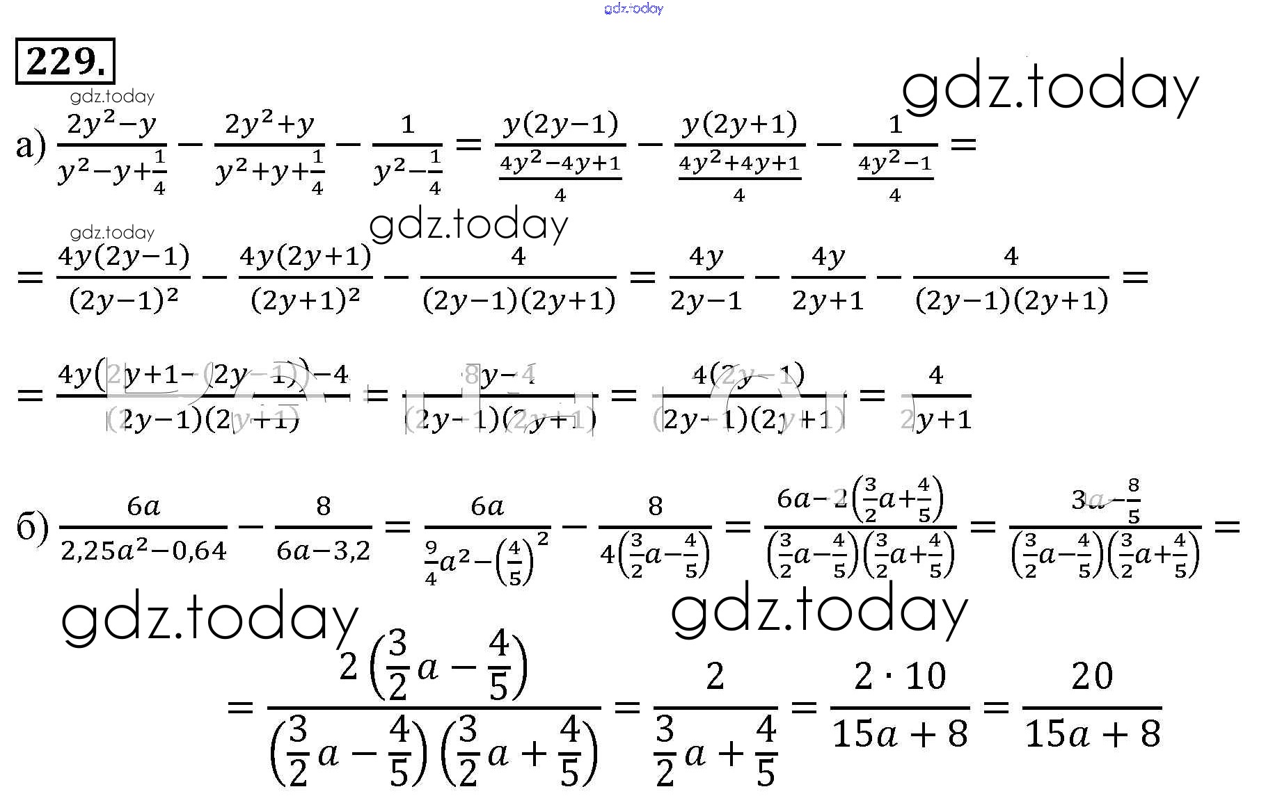 На страницах сайта gdz.today вы найдете учебный и вспомогательный материал, направленный на улучшения знаний школьной программы. ГДЗ - онлайн мир знаний Решение к упражнениям 229 Учебнику по Алгебре для 8 класса Макарычев, Миндюк Просвещение 2016