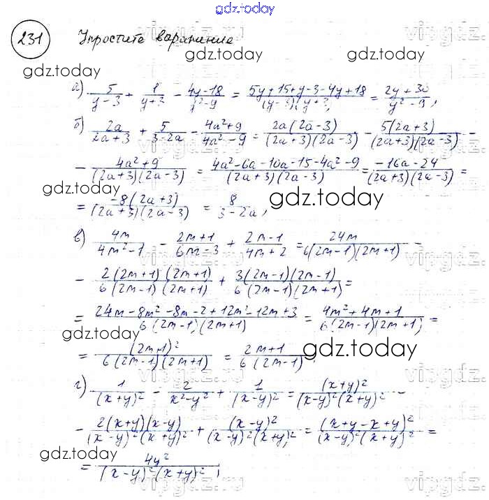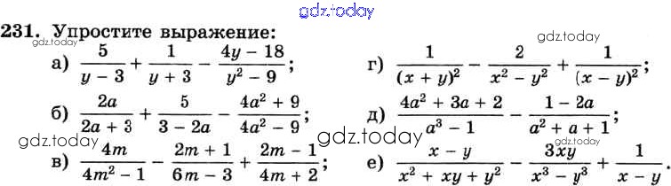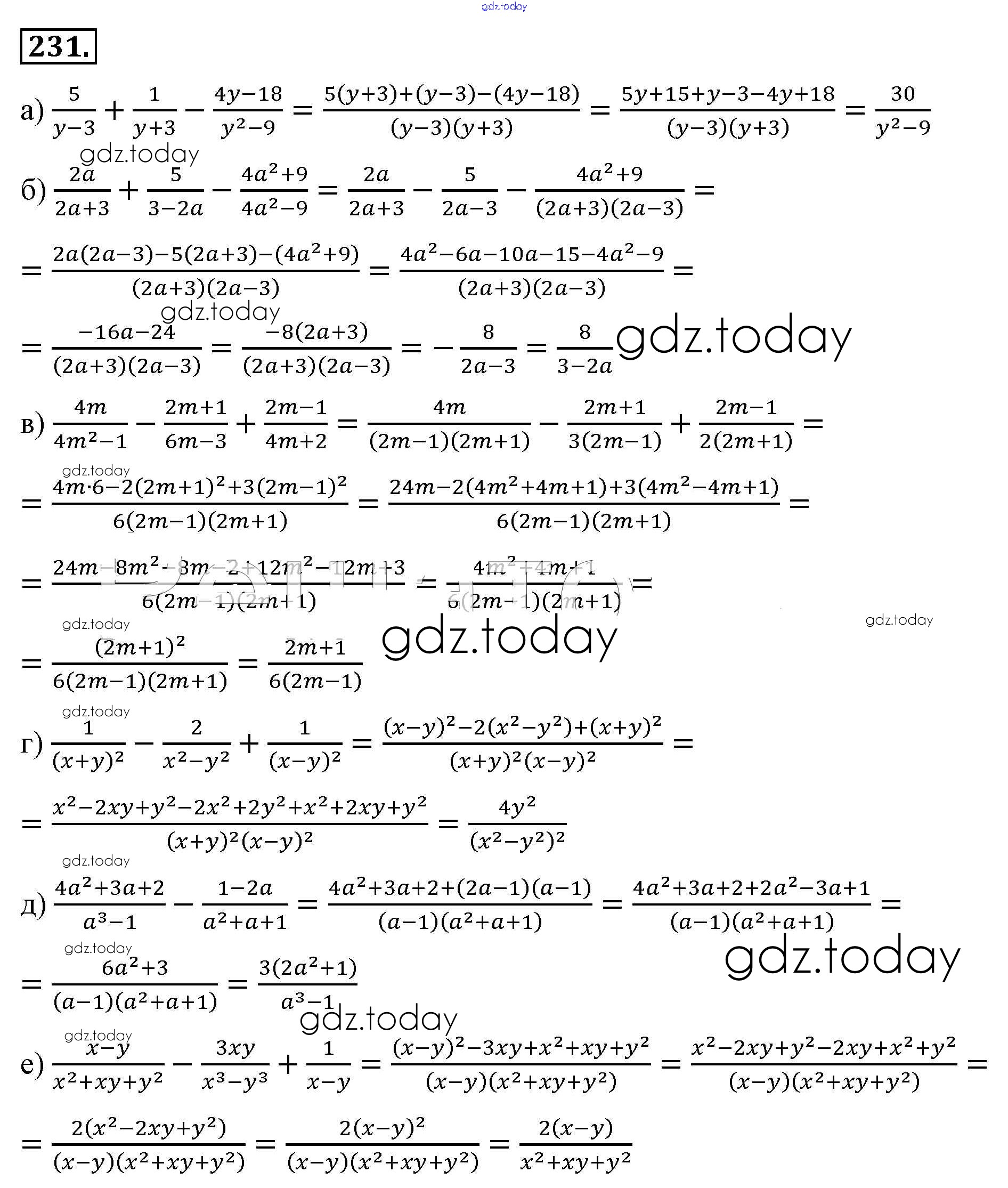 На страницах сайта gdz.today вы найдете учебный и вспомогательный материал, направленный на улучшения знаний школьной программы. ГДЗ - онлайн мир знаний Решение к упражнениям 231 Учебнику по Алгебре для 8 класса Макарычев, Миндюк Просвещение 2016
