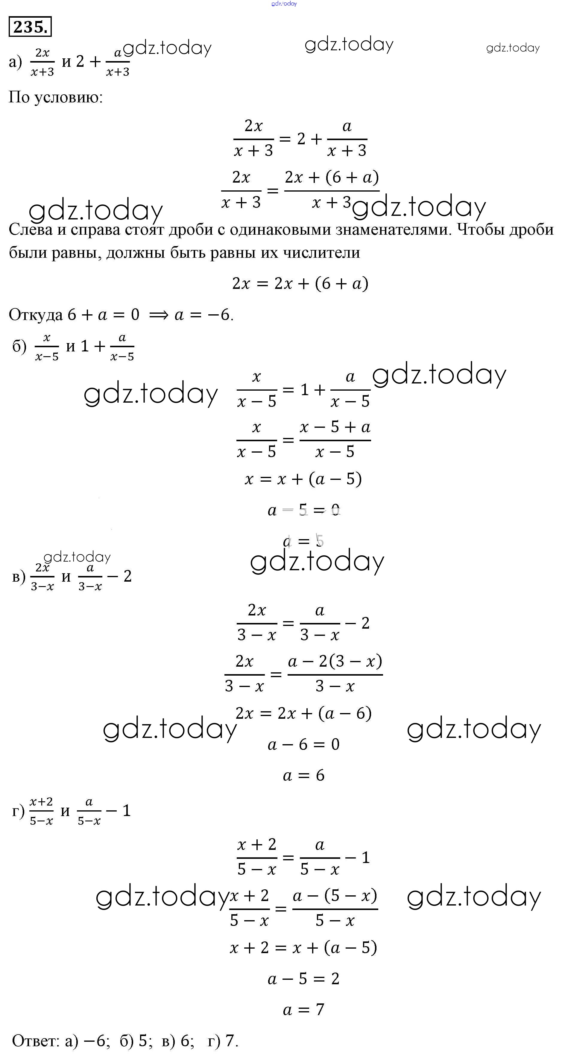 На страницах сайта gdz.today вы найдете учебный и вспомогательный материал, направленный на улучшения знаний школьной программы. ГДЗ - онлайн мир знаний Решение к упражнениям 235 Учебнику по Алгебре для 8 класса Макарычев, Миндюк Просвещение 2016