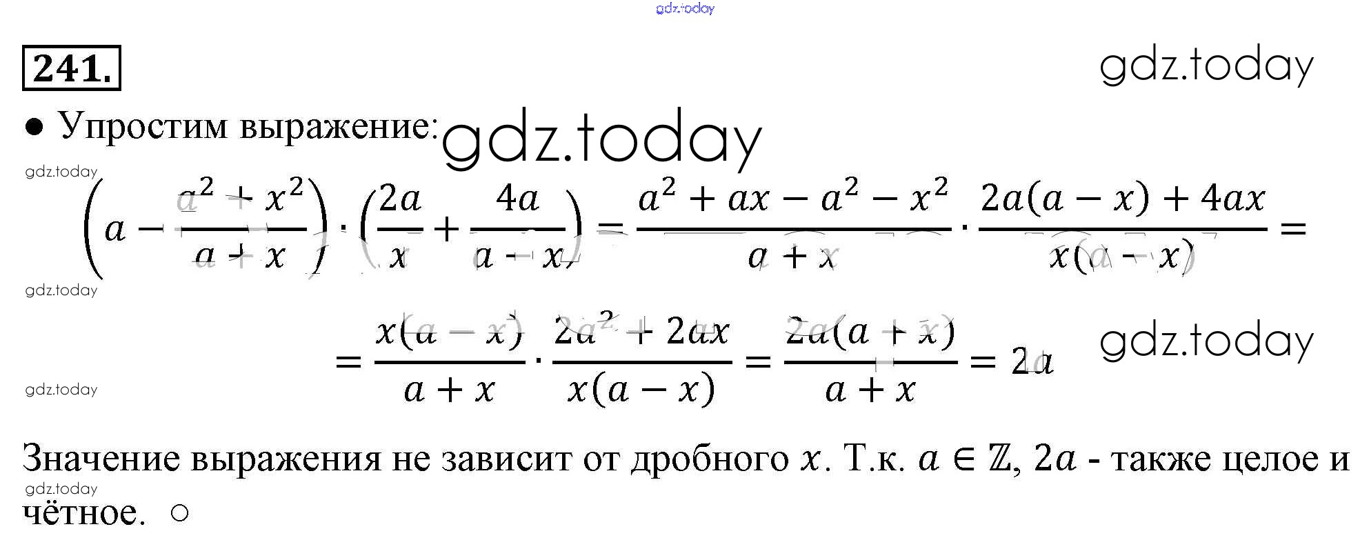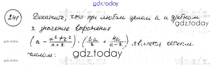 На страницах сайта gdz.today вы найдете учебный и вспомогательный материал, направленный на улучшения знаний школьной программы. ГДЗ - онлайн мир знаний Решение к упражнениям 241 Учебнику по Алгебре для 8 класса Макарычев, Миндюк Просвещение 2016